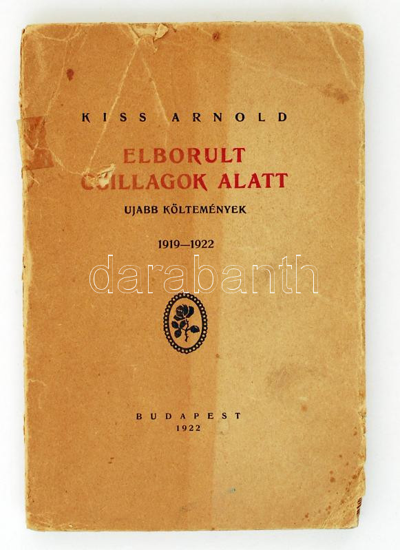 Kiss Arnold: Elborult csillagok alatt. Ujabb költemények 1919-1922. Bp... https://www.darabanth.com/de/222-Fernauktion/222.0/Andere-Sammelgebiete/Bucher-Sonstige-Raritaten~20027/Kiss-Arnold-Elborult-csillagok-alatt-Ujabb-koltemenyek-1919-1922-Bp-Fovarosi-Nyomda-1922-~II960416