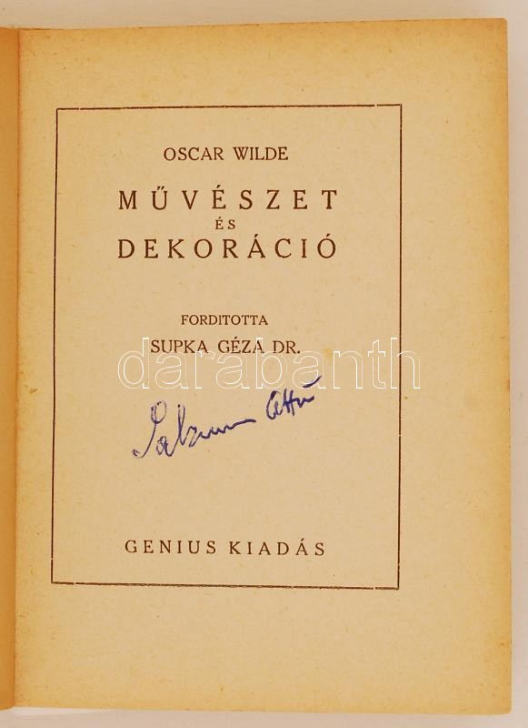 Wilde, Oscar: Művészet és dekoráció.I-II. kötet. Budapest, (1924), Genius kiadás. Kiadói egészvászon kötésben. A fedőlap kissé viseletes, egyébként jó állapotú. 12,5x10cm