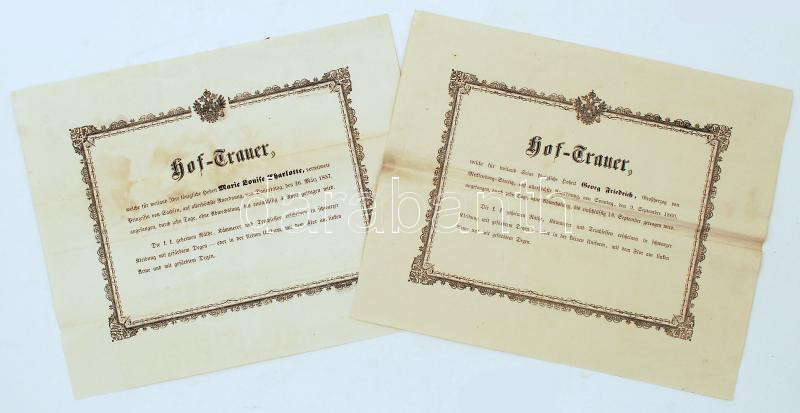 1857-1860, Hof - trauer, Halotti értesítő Maria Luise Charlotte ill., Georg Friedrich. / death certificate for Maria Luise Charlotte and Georg Friedrich