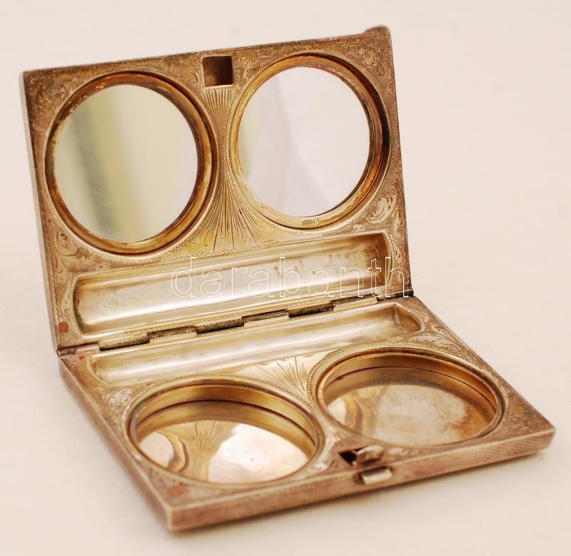 Ezüstözött fém púder vagy szemhéjfestéktartó szép díszítéssel, 8x5,5x1... https://www.darabanth.com/de/222-Fernauktion/222.0/Andere-Sammelgebiete/Flohmarkt~20021/Ezustozott-fem-puder-vagy-szemhejfestektarto-szep-diszitessel-8x5-5x1-cm~II961185