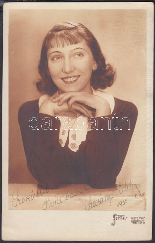 1935 Szentes photo szalon (Budapest): Portré Szecsányi Editről, 18x11 ... https://www.darabanth.com/de/222-Fernauktion/222.0/Andere-Sammelgebiete/Foto~20032/1935-Szentes-photo-szalon-Budapest-Portre-Szecsanyi-Editrol-18x11-cm~II958042