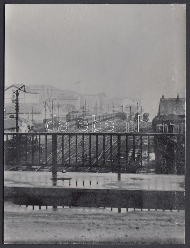 Beschreibung: Budán a Márvány utcai felüljáró a vasút felett. 1954. VIII. 15-31.: felirattal, fotó, 11,5x8cm