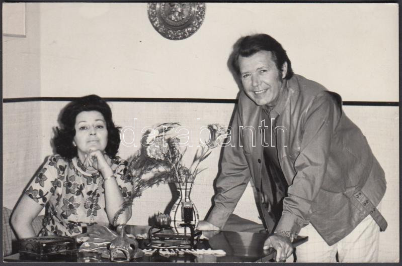 Beschreibung: Záray Márta (1926-2001) és Vámosi János (1925-1997) énekes házaspár fotója, 14x9 cm
