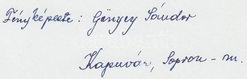 Beschreibung: cca 1930 Gönyey Sándor: Kapuvári népviselet, aláírt vintage néprajzi, viselettörténeti fotó, 18x13 cm
