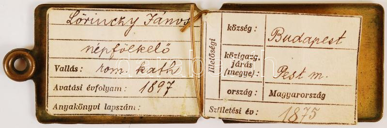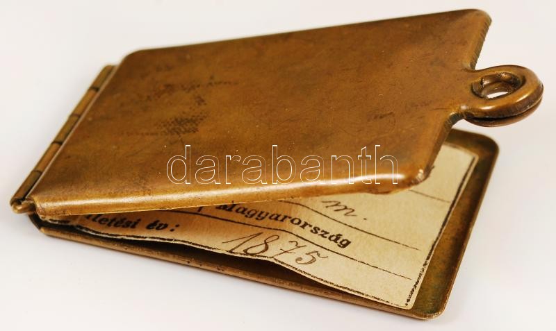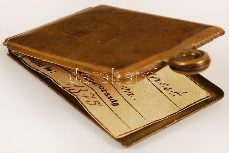 1897-ben felavatott népfölkelő nyitható magyar katonai dögcédulája rézből, hozzá tartozó személyi papírral együtt /