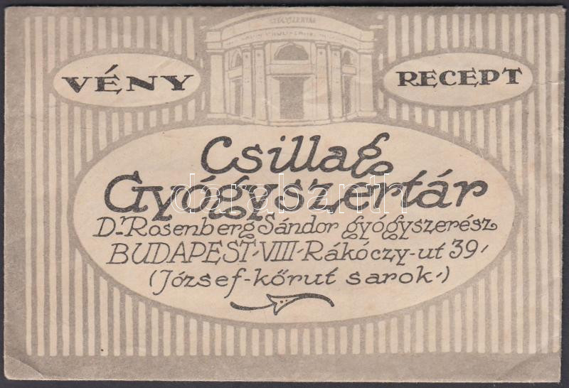 Beschreibung: Csillag gyógyszertár, dr. Rosenberg Sándor gyógyszerész recept boríték.