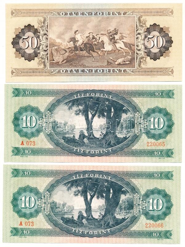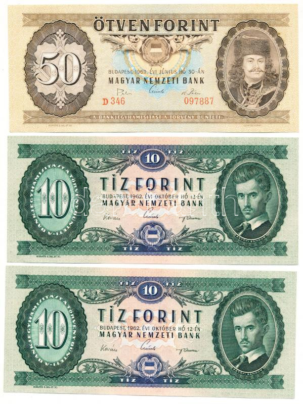 Beschreibung: 1962. 10Ft (2x) sorszámkövetők + 1969. 50Ft gyári papírránccal T:I,I-