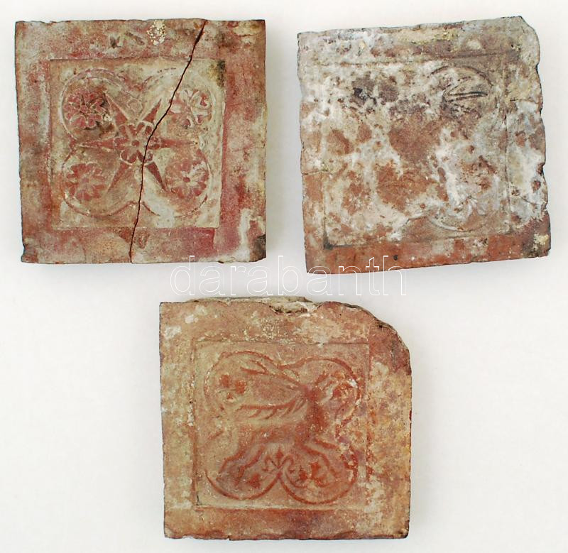 Beschreibung: cca 1600-1700 3 db faragott díszkő építőelem. Egyik törött / Vintage stone ornament tile 20x20 cm