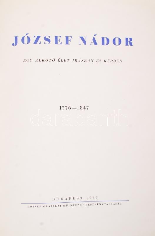 József Nádor: Egy alkotó élet írásban és képben 1776-1847. Budapest, 1... https://www.darabanth.com/de/223-Fernauktion/223.0/Andere-Sammelgebiete/Bucher-Geschichte~11/Jozsef-Nador-Egy-alkoto-elet-irasban-es-kepben-1776-1847-Budapest-1943-Posner-Szines-~II968251