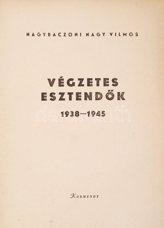 Nagybaczoni Nagy Vilmos: Végzetes esztendők 1938-1945. Kispest, é.n., ... https://www.darabanth.com/de/223-Fernauktion/223.0/Andere-Sammelgebiete/Bucher-Geschichte~11/Nagybaczoni-Nagy-Vilmos-Vegzetes-esztendok-1938-1945-Kispest-en-Kormendy-Kiadoi-felvas~II967326