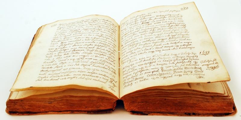 cca 1700 Cserei Mihály: Vera historia Transylvanica ab anno MCCLXI incipiendo ... nagyajtai Cserei Mihály (1667-1756) erdélyi történetÃró, emlékÃró krónikájának kézzel Ãrt, több kéz által készÃtett másolata, névmutatóval ellátva, Cserei munkájának vége (kb. néhány oldal) lemaradt, valamint a 644-664. p. között jelzett hiánnyal. Kopott, aranyozott gerincű félbÅ‘r kötésben, egyébként korához képest jó állapotban.