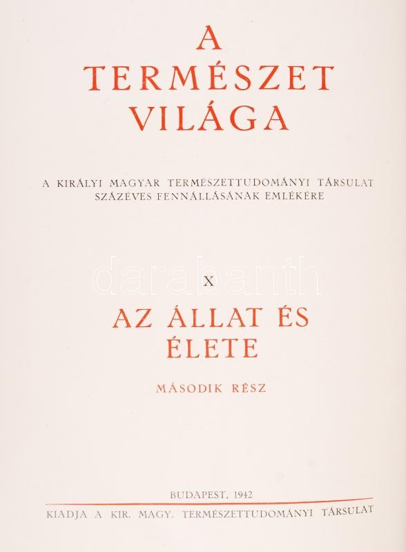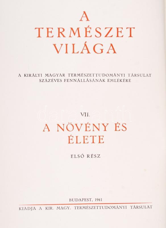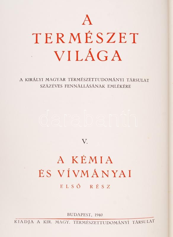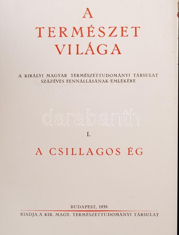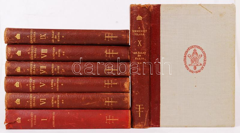 A természet világa. A Királyi Magyar Természettudományi Társulat százéves fennállásának emlékére, 7 kötet. Bp., 1940, Kir. M. Természettudományi Társulat. Kiadói aranyozott gerincű félbőr kötés, kopottas, kötetenként változó állapotban.