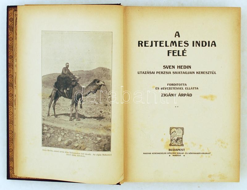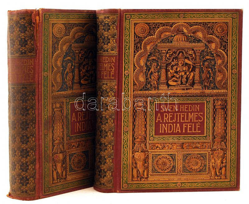 Hedin, Sven: A rejtelmes India. I-II. kötet Sven Hedin utazása Perzsia sivatagjain keresztül. Fordította és bevezetéssel ellátta Zigány Árpád. I. kötet. Bp., (1912), Magyar kereskedelmi Közlöny. Sok fényképpel, rajzalt illusztrált kiadvány. Dombornyomott, gazdagon díszített, egészvászon kötésben.Az egyik kötet gerince szakadozott.