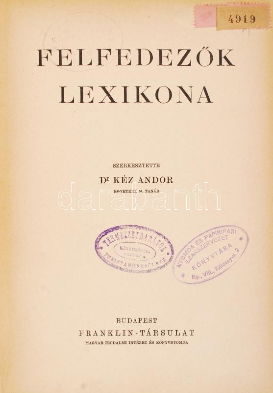 Magyar Földrajzi Társaság: Felfedezők Lexikona. Szerk.: dr. Kéz Andor. Bp.,é.n., Franklin