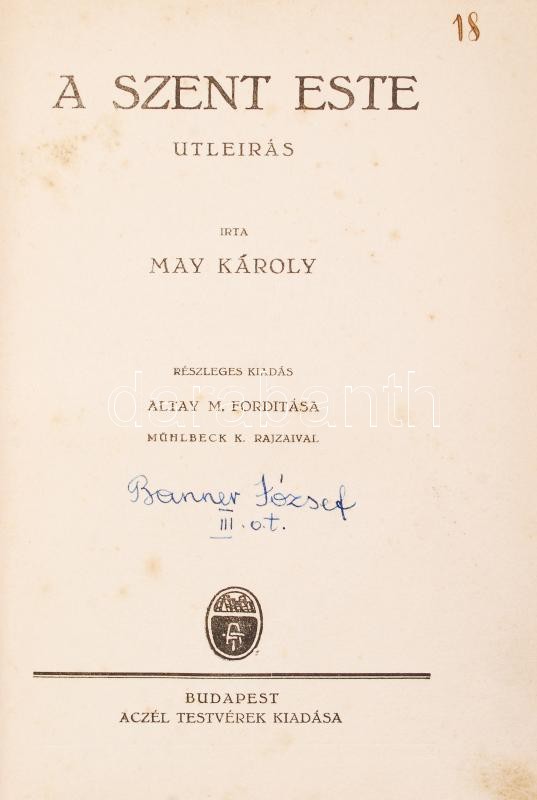 May Károly: A szent este. Útleírás. Bp., é. n., Aczél testvérek. Díszes vászonkötésben, jó állapotban.