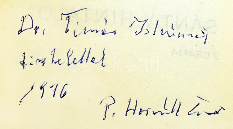 P. Horváth László: Sánta hintaló. Hánta dráma. Bp., 1976. A szerző által Timár István (1913-1991), a Szerzői Jogvédő Hivatal főigazgatója részére dedikálva. Papírkötésben, jó állapotban.