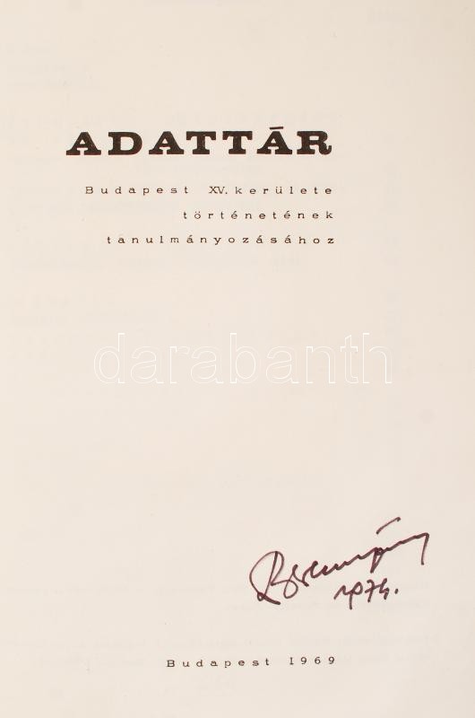 Somogyi Ágnes (szerk.):Adattár. Budapest XV. kerülete történetének tanulmányozásához. Budapest, 1969, XV. ker. Tanács V.B. Népművelési csoportja. Kiadói papír kötésben, jó állapotban.