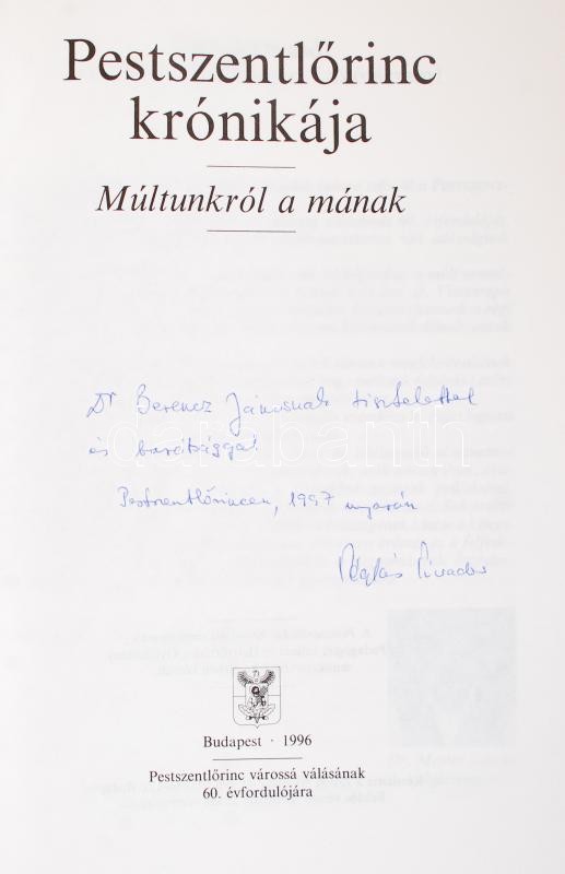 Téglás Tivadar dr. (szerk.: Pestszentlőrinc krónikája. Múltunkról a má... https://www.darabanth.com/de/223-Fernauktion/223.0/Andere-Sammelgebiete/Bucher-Reisen-Stadte~9/Teglas-Tivadar-dr-szerk-Pestszentlorinc-kronikaja-Multunkrol-a-manak-Budapest-1996-P~II975349