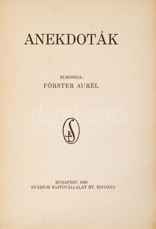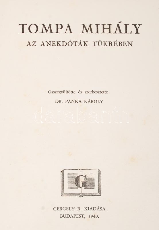 2 db anekdotákat tartalmazó könyv-Panka Károly(szerk.): Tompa Mihály az anekdoták tükrében. Bp., 1940, Gergely R. Kiadói kartonált kötés, kopottas állapotban; Förster Aurél: Anekdoták II. Bp., 1926, Stádium. Kiadói papírkötés, kissé kopottas állapotban.