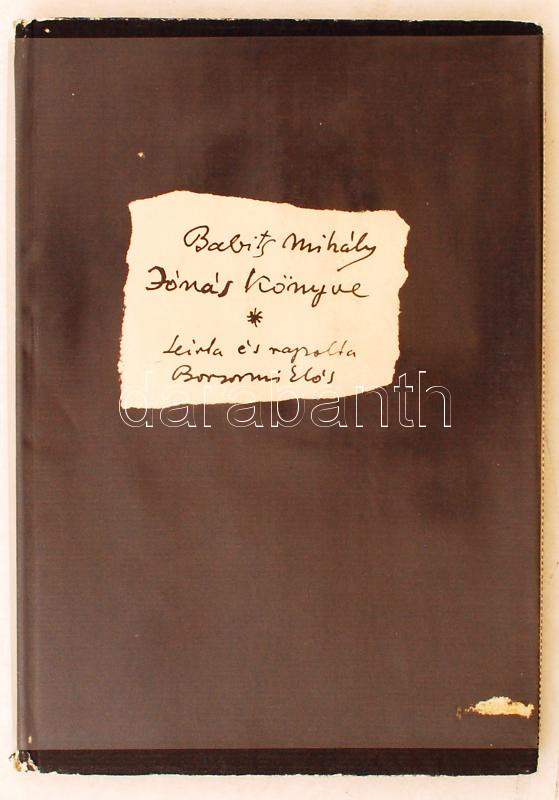 Babits Mihály: Jónás könyve. Leírta és rajzolta Borsos Miklós. Bp., 19... https://www.darabanth.com/de/223-Fernauktion/223.0/Andere-Sammelgebiete/Bucher-Sonstige-Raritaten~40/Babits-Mihaly-Jonas-konyve-Leirta-es-rajzolta-Borsos-Miklos-Bp-1974-Szepirodalmi-Kony~II973923