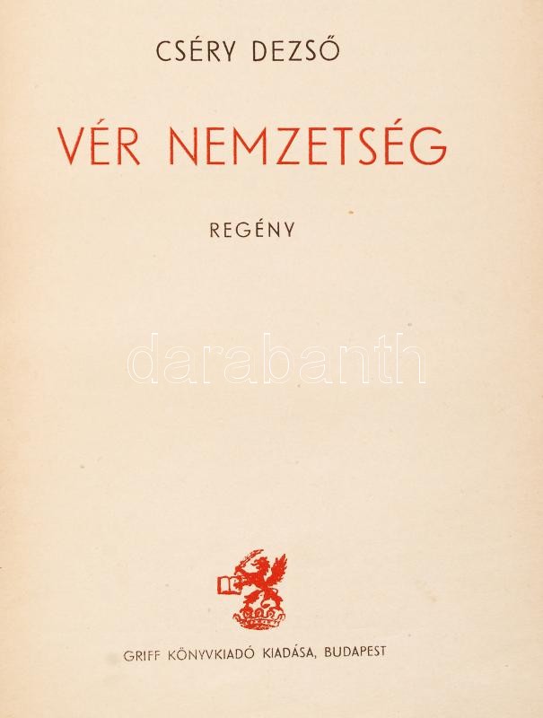 Cséry Dezső: Vér és nemzetség. Budapest, 1943, Griff. Cséry Dezső álta... https://www.darabanth.com/de/223-Fernauktion/223.0/Andere-Sammelgebiete/Bucher-Sonstige-Raritaten~40/Csery-Dezso-Ver-es-nemzetseg-Budapest-1943-Griff-Csery-Dezso-altal-ajanlott-ill-dedik~II973850