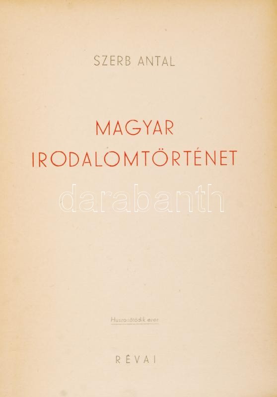 Szerb Antal: Magyar irodalomtörténet. Bp., 1943, Révai. Kicsit laza fé... https://www.darabanth.com/de/223-Fernauktion/223.0/Andere-Sammelgebiete/Bucher-Sonstige-Raritaten~40/Szerb-Antal-Magyar-irodalomtortenet-Bp-1943-Revai-Kicsit-laza-felvaszon-kotesben-jo-C3~II967333