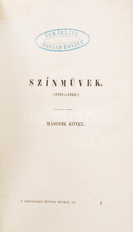 Vörösmarty minden munkái. Kiad. Barja J., Schedel Ferenc. 6. köt. Pest... https://www.darabanth.com/de/223-Fernauktion/223.0/Andere-Sammelgebiete/Bucher-Sonstige-Raritaten~40/Vorosmarty-minden-munkai-Kiad-Barja-J-Schedel-Ferenc-6-kot-Pest-1845-Kilian-Gyorgy-K~II974669
