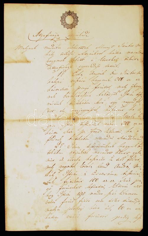 1856 Atyafiságos egyezkedés Jámbor Mihály hátrahagyott vagyonának elos... https://www.darabanth.com/de/223-Fernauktion/223.0/Andere-Sammelgebiete/Dokument~31/1856-Atyafisagos-egyezkedes-Jambor-Mihaly-hatrahagyott-vagyonanak-elosztasarol-Szerus-ke~II972966