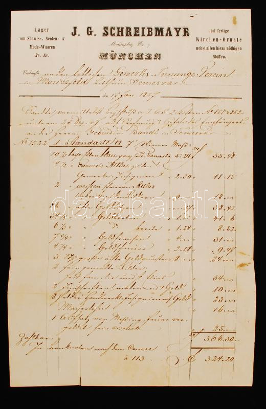 1857 Móricföldi ipartestület mint vevők számlája különféle ruhaneműről... https://www.darabanth.com/de/223-Fernauktion/223.0/Andere-Sammelgebiete/Dokument~31/1857-Moricfoldi-ipartestulet-mint-vevok-szamlaja-kulonfele-ruhanemurol-a-helyi-ipartestC3~II935307