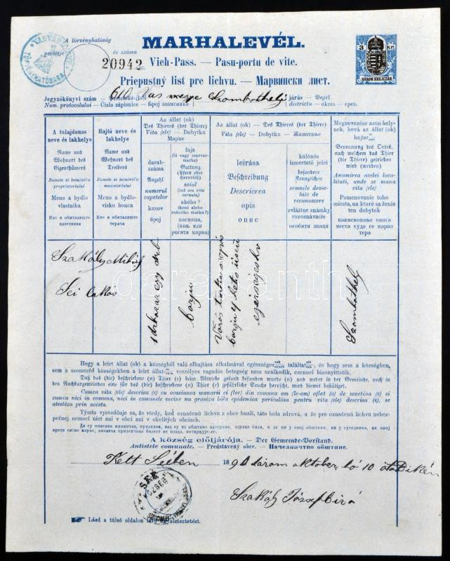 Beschreibung: 1890 Sé(Vas megye), marhalevél
