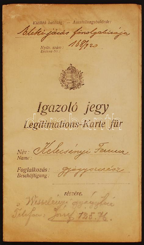 1920 Gyógyszerész számára kiállított igazoló jegy fényképpel, okmánybé... https://www.darabanth.com/de/223-Fernauktion/223.0/Andere-Sammelgebiete/Dokument~31/1920-Gyogyszeresz-szamara-kiallitott-igazolo-jegy-fenykeppel-okmanybelyeggel~II969588