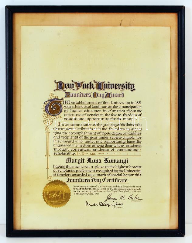 1976 New York University oklevél Koményi Margit Ilona számára, üvegeze... https://www.darabanth.com/de/223-Fernauktion/223.0/Andere-Sammelgebiete/Dokument~31/1976-New-York-University-oklevel-Komenyi-Margit-Ilona-szamara-uvegezett-keretben-38C39726-cm~II954325
