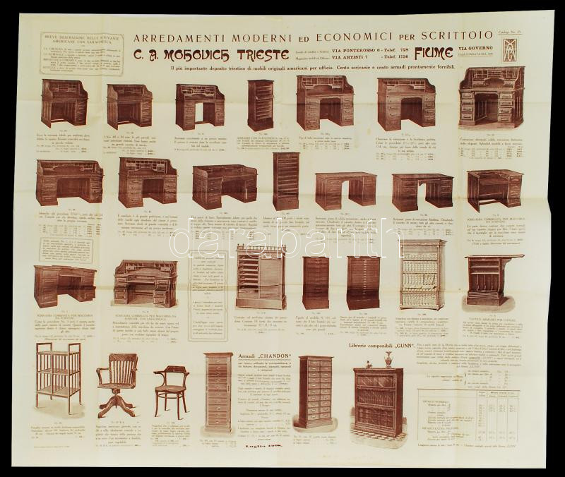 1908 Trieszt, Fiume, Irodabútorok olasz nyelvű képes ismertető plakátj... https://www.darabanth.com/de/223-Fernauktion/223.0/Andere-Sammelgebiete/Drucksachen~7/1908-Trieszt-Fiume-Irodabutorok-olasz-nyelvu-kepes-ismerteto-plakatja-72x61-cm--3Cbr3E1908-T~II972258