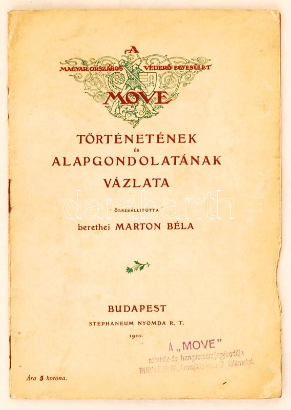1920 Bp., A Magyar Országos Véderő Egyesület (MOVE) történetének és al... https://www.darabanth.com/de/223-Fernauktion/223.0/Andere-Sammelgebiete/Drucksachen~7/1920-Bp-A-Magyar-Orszagos-Vedero-Egyesulet-MOVE-tortenetenek-es-alapgondolatanak-vazla~II972974