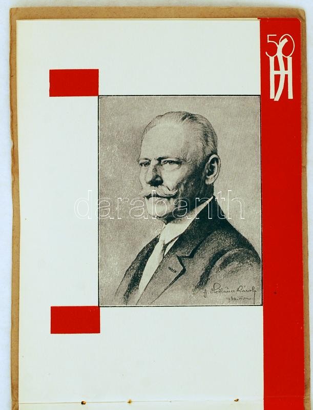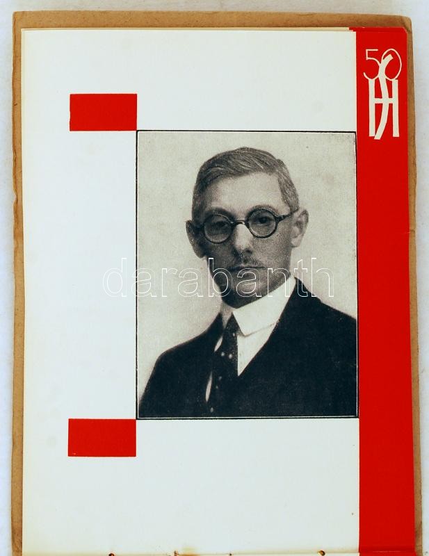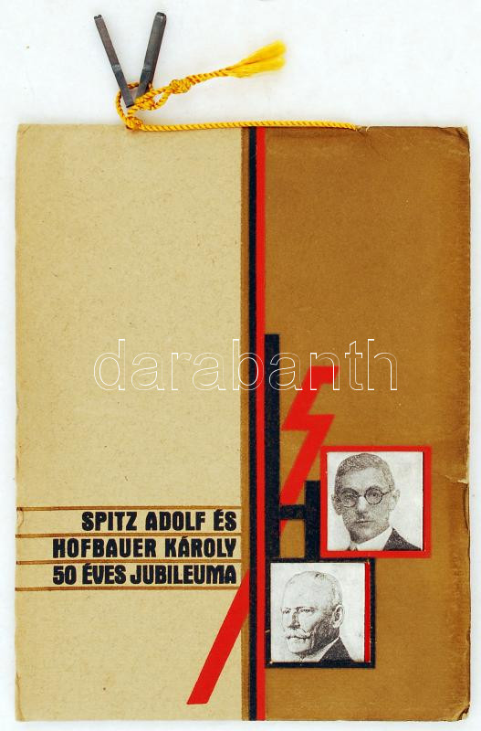 1930 a Pesti Lloyd Társulat díszes meghívója a Spitz Adolf és Hofbauer Károly, a Továbbképző Szaktanfolyam előadóinak 50 éves jubileuma alkalmából rendezett jubileumi ünnepélyre, a két ünnepelt fényképével, részletes életrajzával