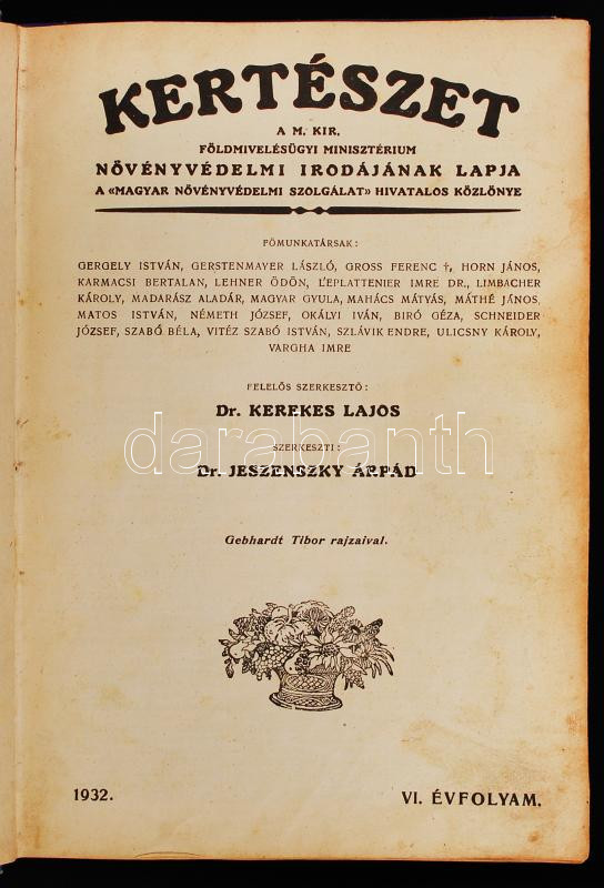 1932 2 db kertészeti tematikájú periodika: Kertészet. Szerk.: Jeszenszky Árpád. VI. évfolyam, 1932.; Növényvédelem. Szerk.: Kerekes Lajos. VIII. évfolyam, 1932. A két évfolyam egybekötve. Félvászon kötésben, jó állapotban.