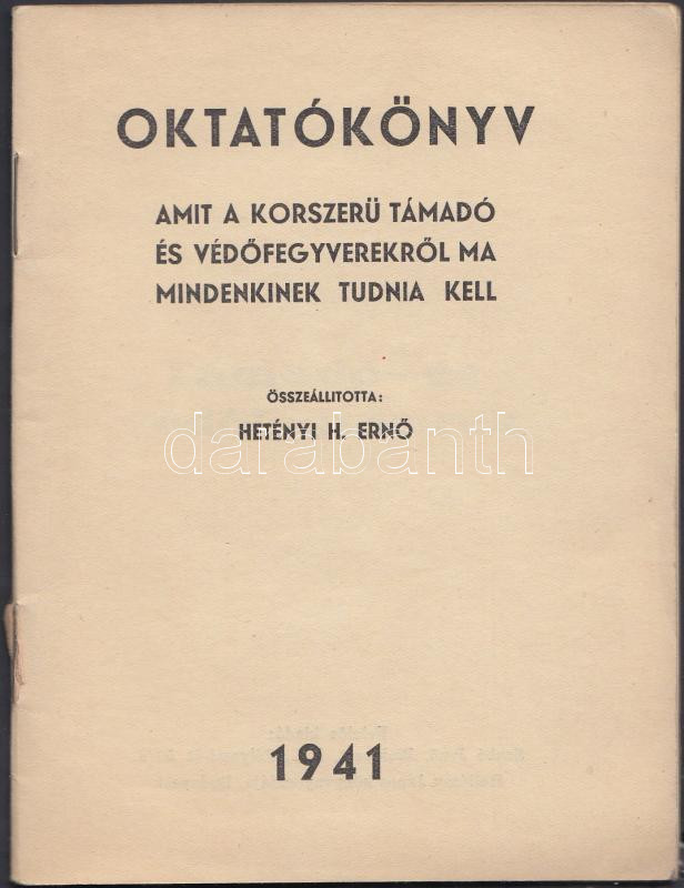 1941 Oktatókönyv. Amit a korszerű támadó és védőfegyverekről ma minden... https://www.darabanth.com/de/223-Fernauktion/223.0/Andere-Sammelgebiete/Drucksachen~7/1941-Oktatokonyv-Amit-a-korszeru-tamado-es-vedofegyverekrol-ma-mindenkinek-tudnia-kell-O~II971320