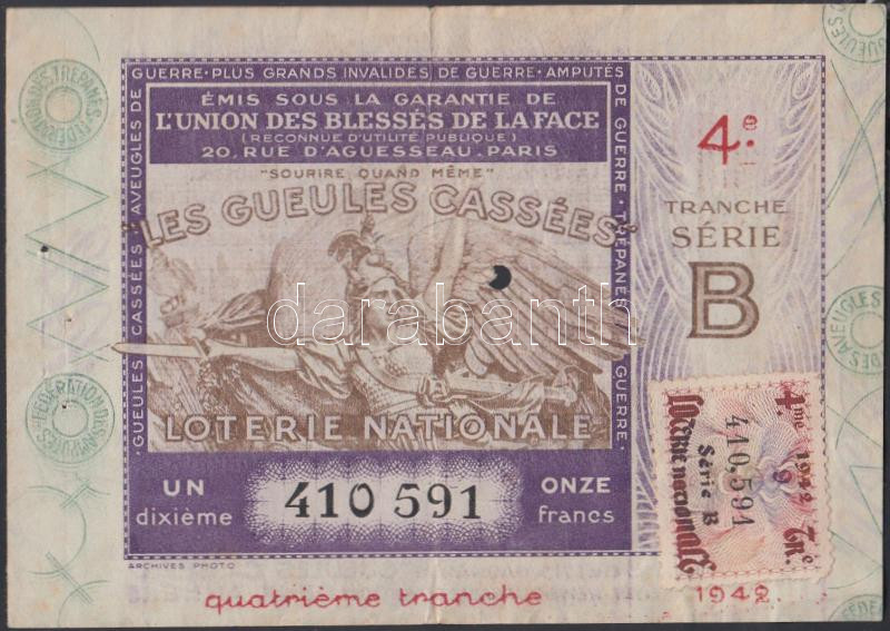 Beschreibung: 1942 Sorsjegy bélyeggel "Les Gueles Cassées"