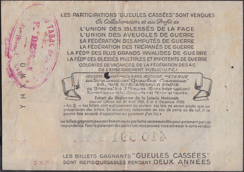 1942 Sorsjegy bélyeggel "Les Gueles Cassées" https://www.darabanth.com/de/223-Fernauktion/223.0/Andere-Sammelgebiete/Drucksachen~7/1942-Sorsjegy-belyeggel-Les-Gueles-Cassees~II959736