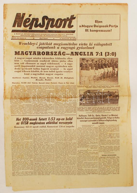 1954 A Népsport május 24-i száma, benne a Magyarország-Anglia 7:1-es e... https://www.darabanth.com/de/223-Fernauktion/223.0/Andere-Sammelgebiete/Drucksachen~7/1954-A-Nepsport-majus-24-i-szama-benne-a-Magyarorszag-Anglia-71-es-eredmennyel-zarult-meccsr~II973130