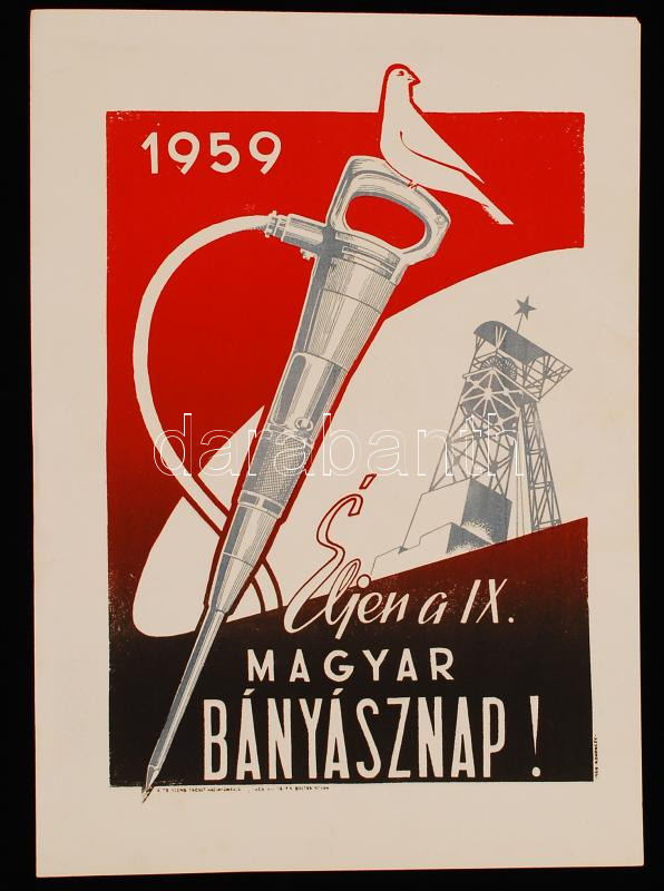 1959 Éljen a IX. magyar bányásznap! feliratú plakát, 30x42 cm https://www.darabanth.com/de/223-Fernauktion/223.0/Andere-Sammelgebiete/Drucksachen~7/1959-Eljen-a-IX-magyar-banyasznap-feliratu-plakat-30x42-cm~II973301