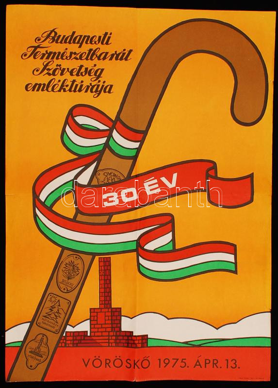 Beschreibung: 1975 30 év - Budapesti Természetbarát Szövetség Emléktúrája, Vöröskő, 1975. április 13. Plakát, 69×50 cm