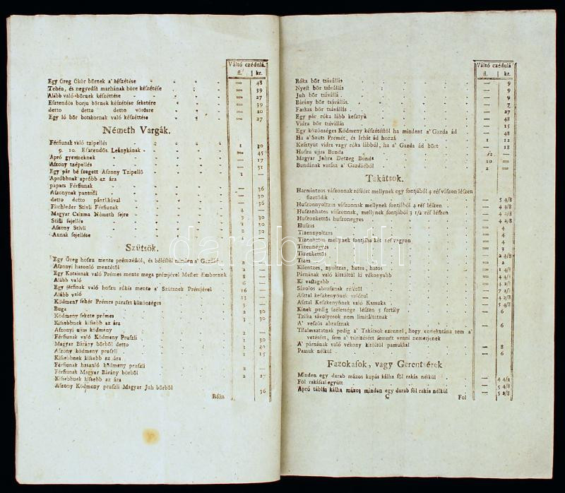 Beschreibung: cca 1812 Somogy vármegye által kiadott limitatio, árak, díjak meghatározása, 22p