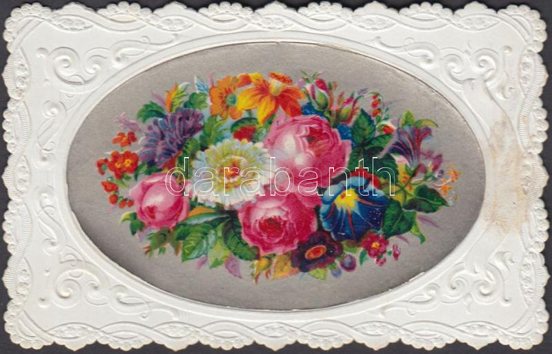 Beschreibung: cca 1870 Csipke, litho üdvözlőkártya / Embroided litho greeting card