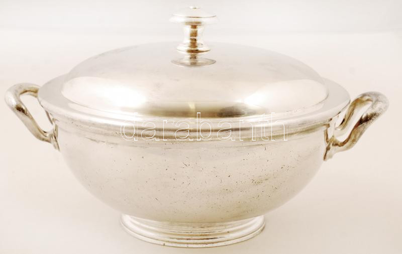 Ezüstözött alpakka leveses tál fedéllel, jelzett, d: 20 cm, m: 15,5 cm https://www.darabanth.com/de/223-Fernauktion/223.0/Andere-Sammelgebiete/Flohmarkt~27/Ezustozott-alpakka-leveses-tal-fedellel-jelzett-d-20-cm-m-15-5-cm~II971050