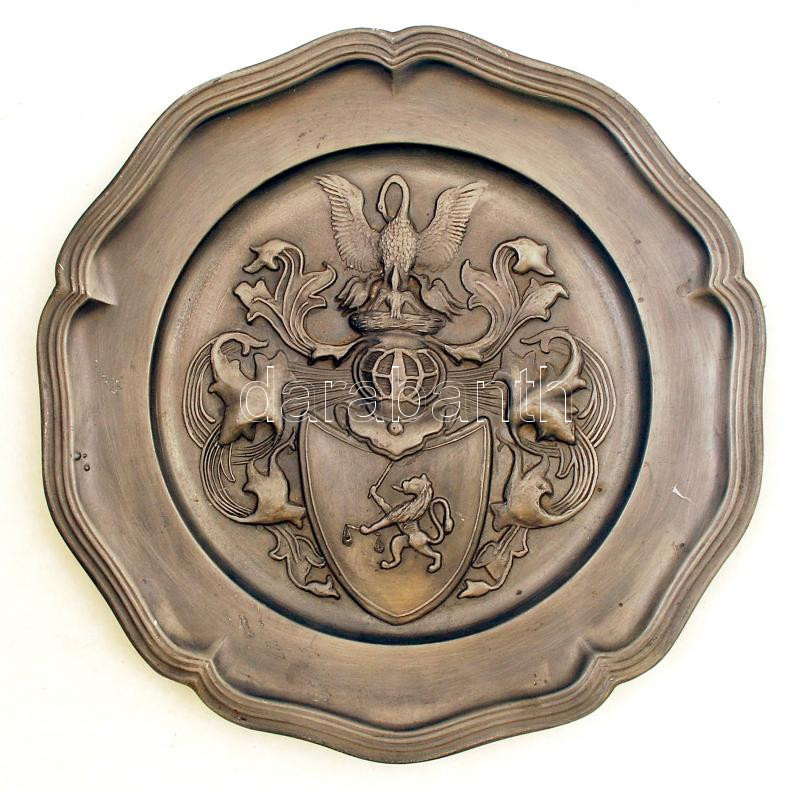 Beschreibung: Falra akasztható ón tányér, valószínűleg a Sarnóczay-család címerváltozatával, jelzett, d: 23 cm
