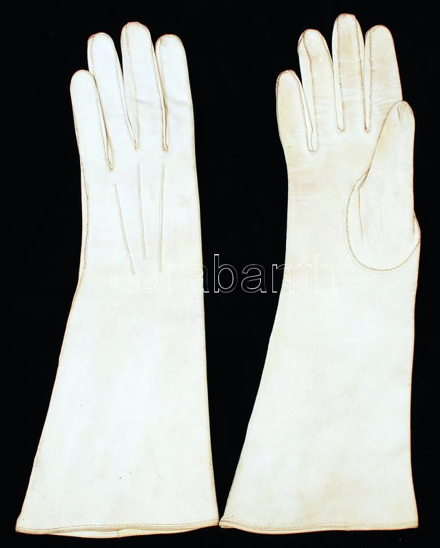 Női glaszé kesztyű, bőr, kis méretű, tört fehér színű. https://www.darabanth.com/de/223-Fernauktion/223.0/Andere-Sammelgebiete/Flohmarkt~27/Noi-glasze-kesztyu-bor-kis-meretu-tort-feher-szinu~II967098