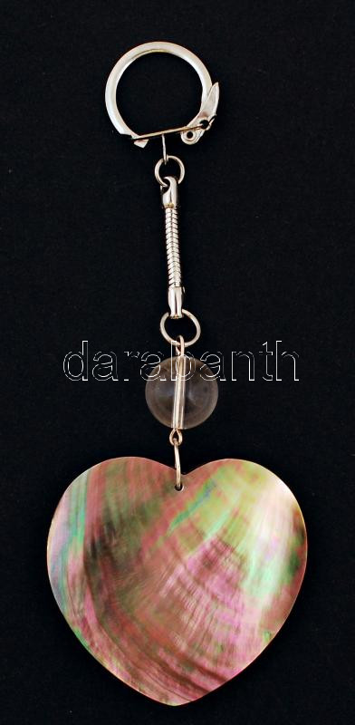 Beschreibung: Szív alakú kulcstartó kagylóhéjból hegyikristály gyönggyel, 5x13 cm