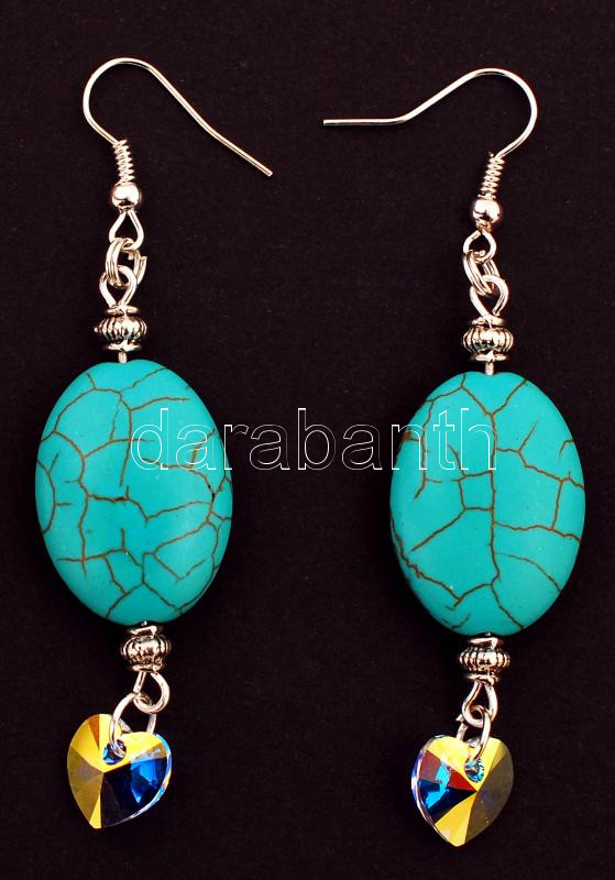 Beschreibung: Türkizzel díszített fülbevalópár szív alakú függővel