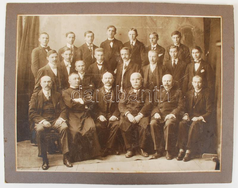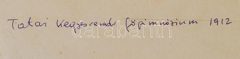 Beschreibung: 1912 a Tatai Piarista Főgimnázium végzős osztálya, hátulján feliratozva, 27×20,5 cm